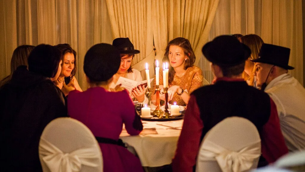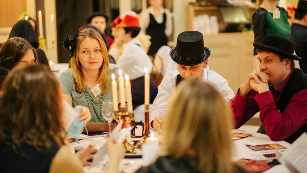 At the beginning of the party, we seat guests at the tables and give out the roles to each player. All teams play the same story simultaneously. Each table will have their own detective, criminal and suspects! The aim of the game is to come closer to solving the crime than the other teams, and score more points for correct leads about the investigation. The Detective Battle is very gripping! Considering that the teams play right at the tables, even those guests who usually "sit out" of the holiday program become part of the process.