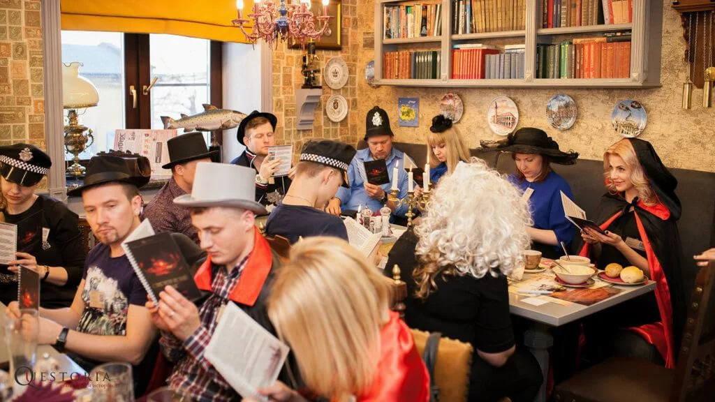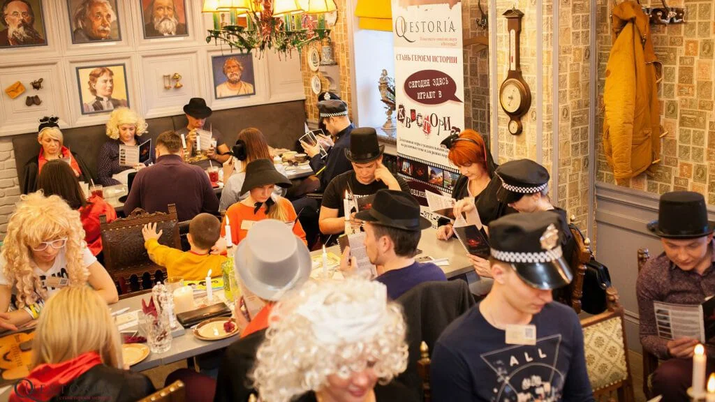 Our questories are usually designed for at least 2.5-3 hours of playtime. Players move around the room, actively communicate and participate in creating a unique and original story.