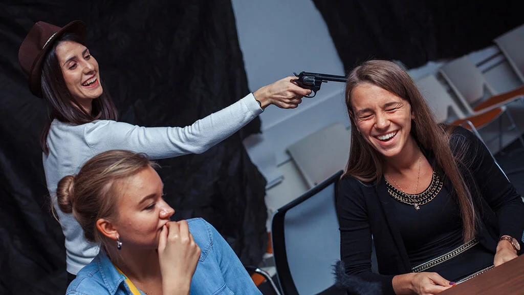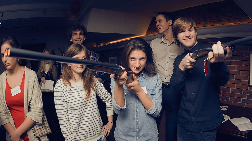 <span class='red'>Квестория</span>&nbsp;&mdash; это сюжетно-ролевая игра. Ведущий назначает роли и&nbsp;цели. Чтобы их&nbsp;достичь, взаимодействуете друг с&nbsp;другом&nbsp;&mdash; договариваетесь, флиртуете, плетёте интриги. Можно проводить в&nbsp;любом удобном месте, на&nbsp;любой праздник&nbsp;&mdash; корпоратив, день рождения, вечеринку с&nbsp;друзьями.